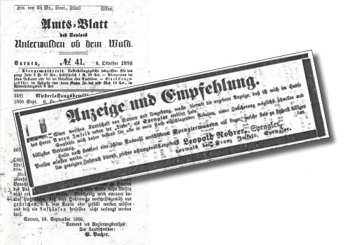Anzeige im Amtsblatt vom 8. Oktober 1886